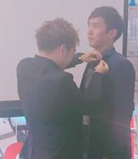 その際に昇格者・新入社員へ代表から直接バッチが授与されます!!