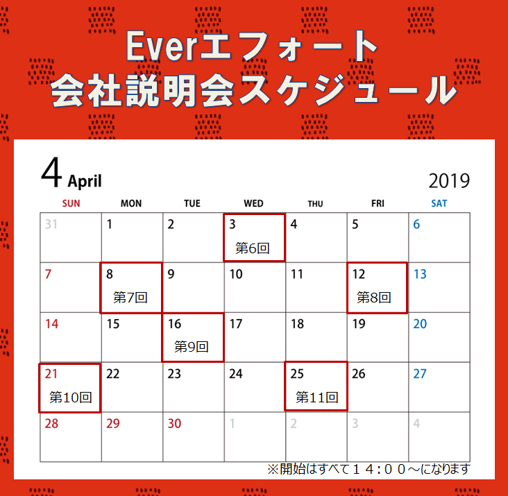 また、4月度の説明会は下記カレンダーをご確認下さい♪