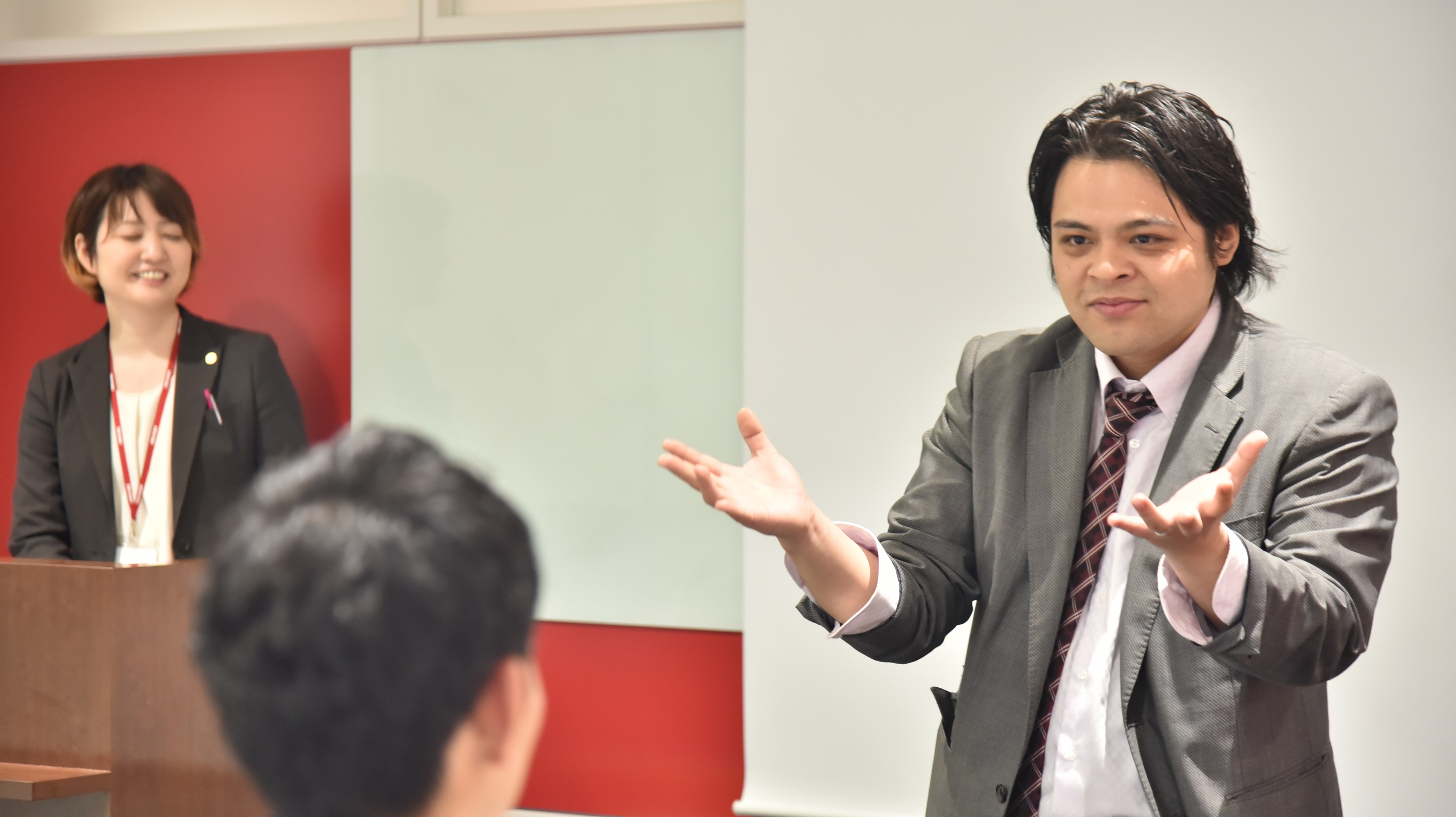 説明会の合間には 弊社イチのエンターテイナーが登場したりと