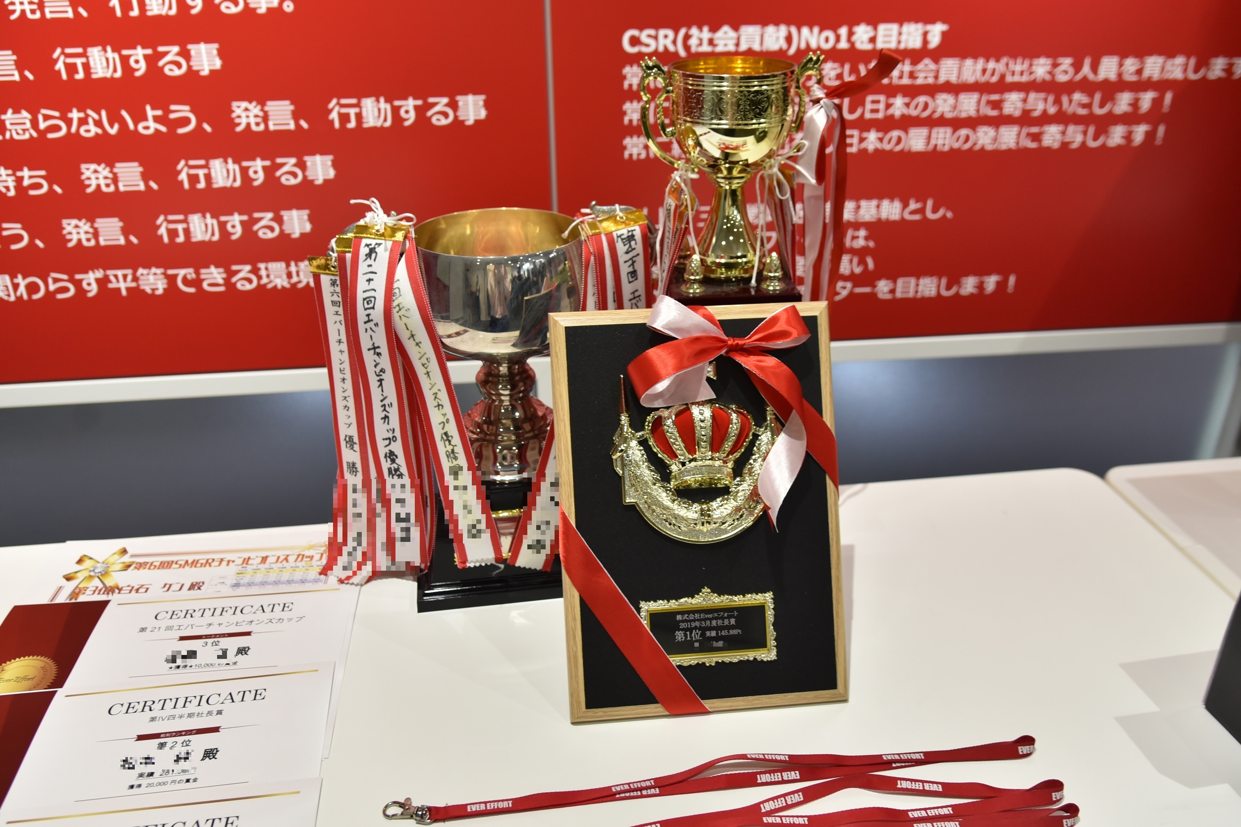 先月に頑張った人へ、トロフィーや賞状、賞品や賞金が贈呈されます!