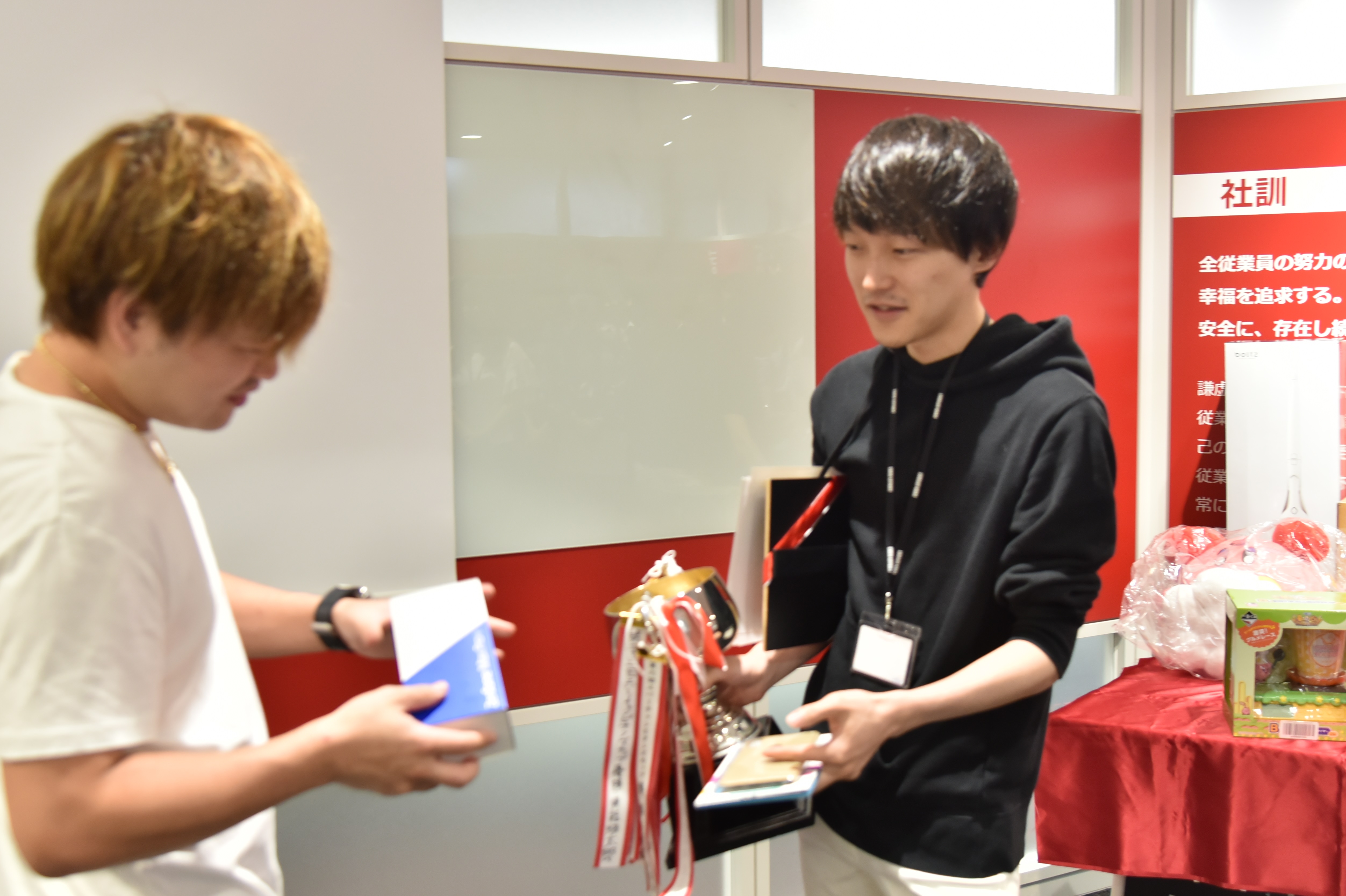 社長から直々に賞状やトロフィー、賞品を手渡ししてもらえるので